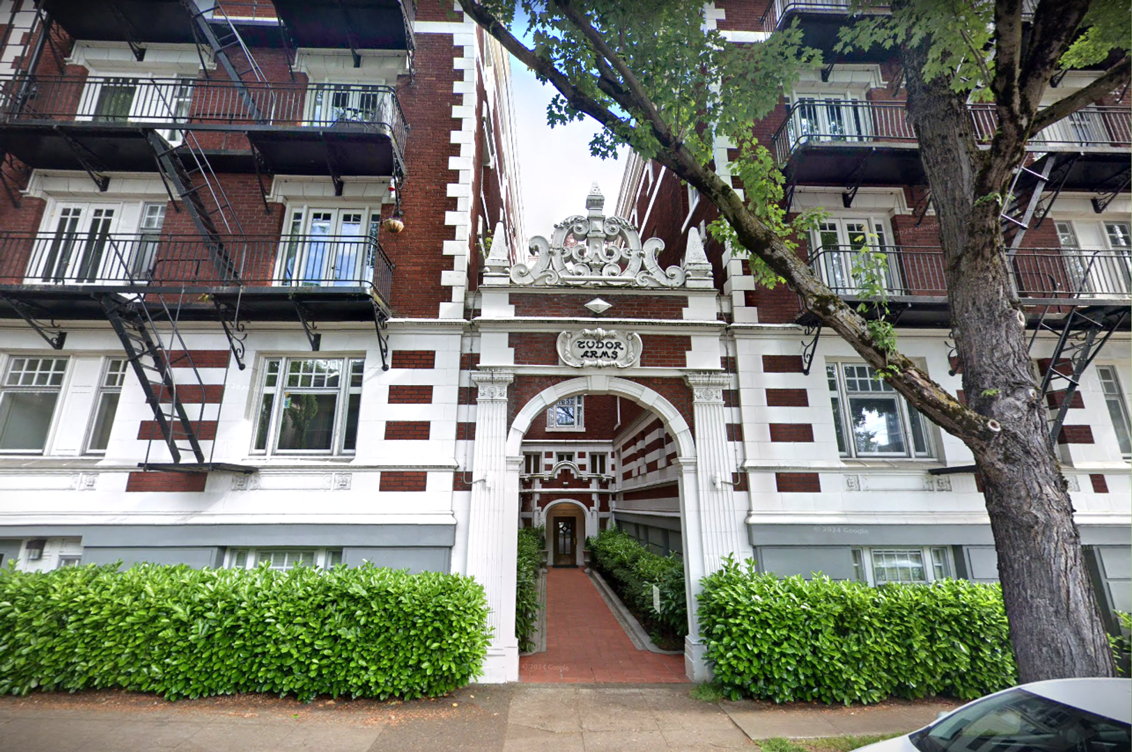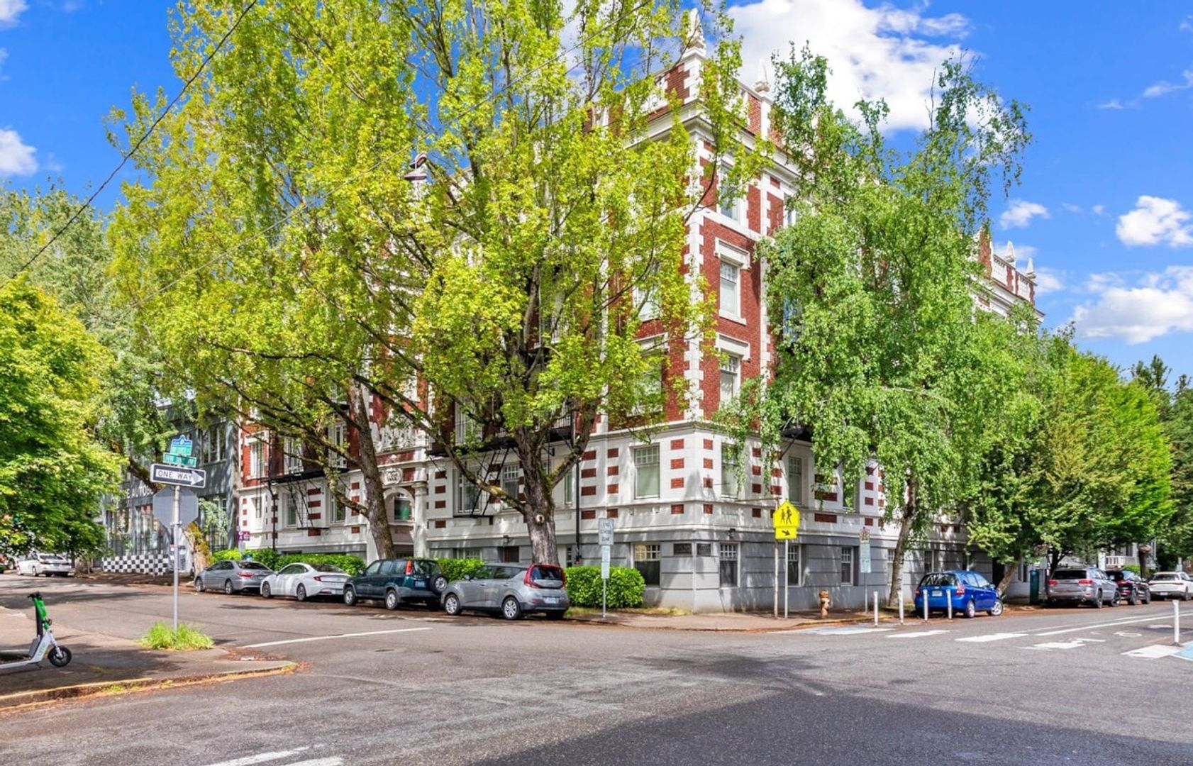 Step into classic elegance with this beautifully maintained studio in the historic Tudor Arms building, nestled in the heart of Nob Hill. This bright and inviting space features gorgeous wood floors and a private balcony, blending vintage charm with modern comfort. The secure-access building offers intercom entry and an elevator for added convenience. The kitchen includes a refrigerator, electric stove, and generous cabinet storage, making it both practical and functional. A full bathroom with a shower/tub combination completes the living space. Additional amenities include an on-site coin-operated laundry facility and secure bike storage. A flat monthly fee of $75 covers water, sewer, and trash services. Located just blocks from the Pearl District and downtown, you're surrounded by exceptional restaurants, boutique shops, and close access to I-5, 405, and Highway 26. This studio offers the perfect balance of historic charm and urban convenience. NO Pets. NO Smoking. Drive by and then call 503-526-9311 to schedule a viewing.