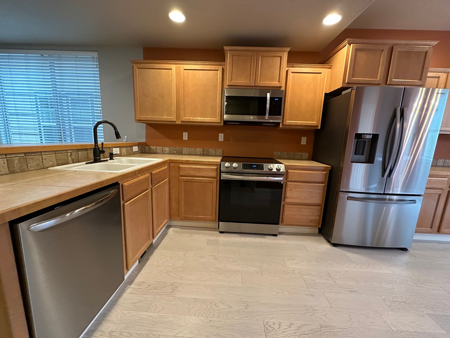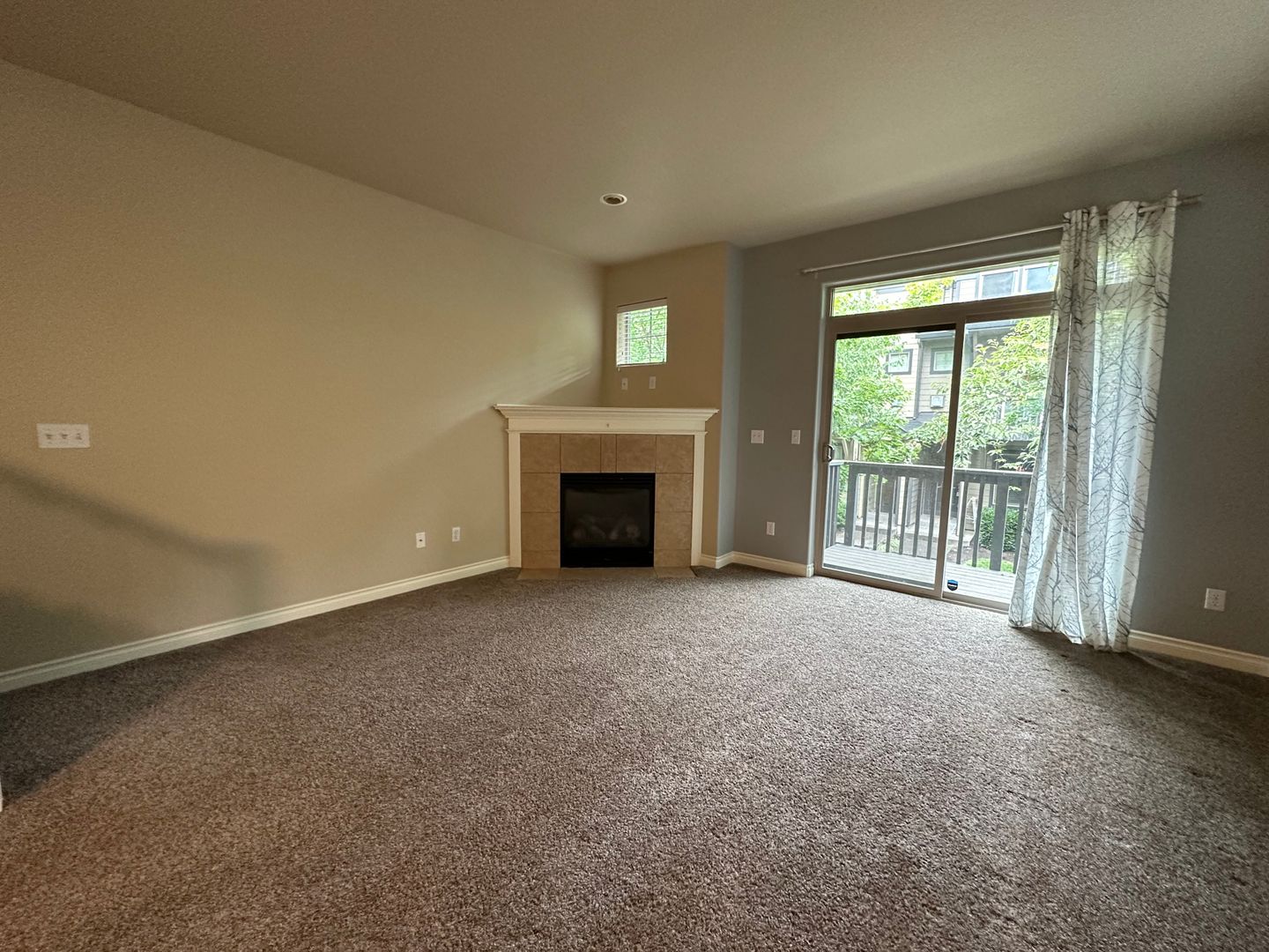 Outstanding 1636 SqFt, end unit Townhome with 2 bedrooms, 2.5 bathrooms overlooks a beautiful wooded greenspace and holds so many extra amenities! Main floor is a great room floorplan with dramatic 9ft ceilings, nest thermostat, cozy gas fireplace and slider to a covered deck. Impressive kitchen comes with all stainless steel appliances, including a separate wine fridge, pantry, eating bar and dinning room. Both bedrooms have vaulted ceilings and primary suite has private bathroom with dual sink vanity. Washer and dryer are also provided in laundry room. Den/Office on lower level. Double car garage with opener. Excellent location near Recuerdo Park and close to Nike, Intel, & Elmonica MAX line. This home is a MUST SEE!! NO Smoking. NO Pets. Drive by and then call 503-526-9311 to schedule a viewing.