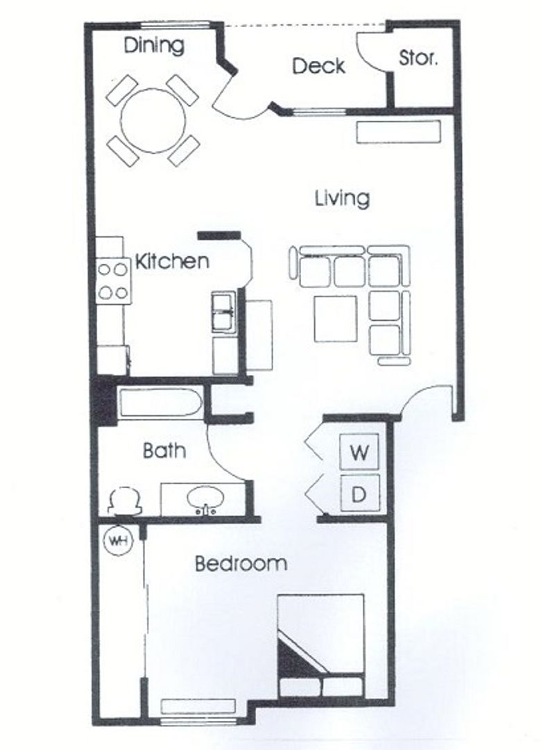 Enjoy the convenience of a washer/dryer in your roomy one bedroom apartment! On the ground floor, Only $1330 per month. Will be available by April 1, 2026. Deck with storage. Lovely wooded setting.