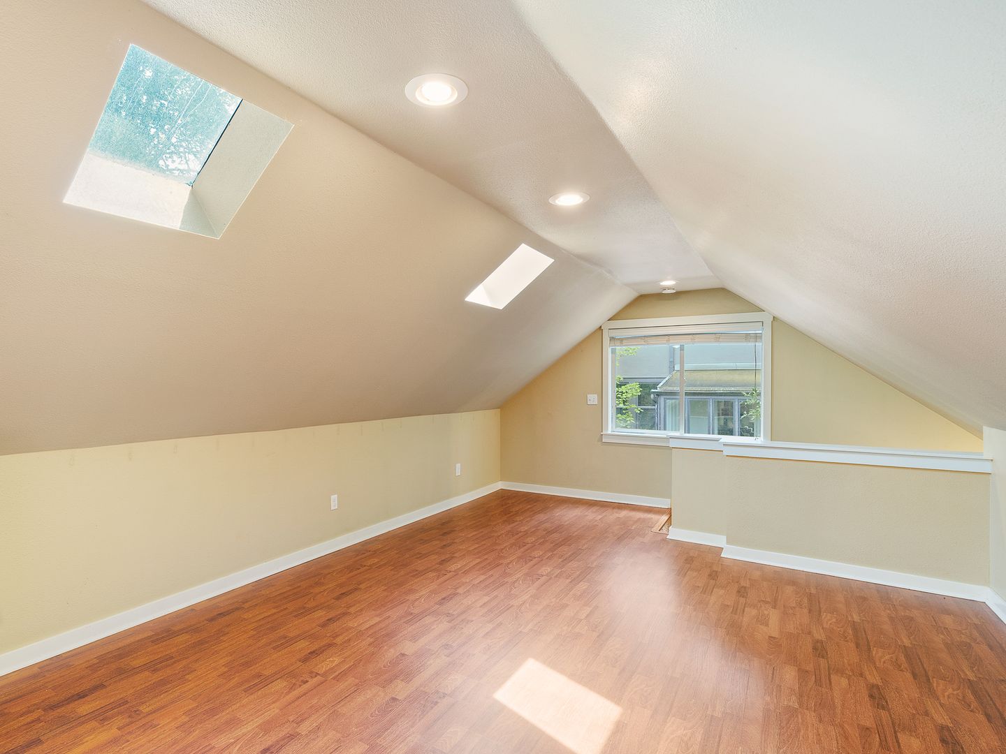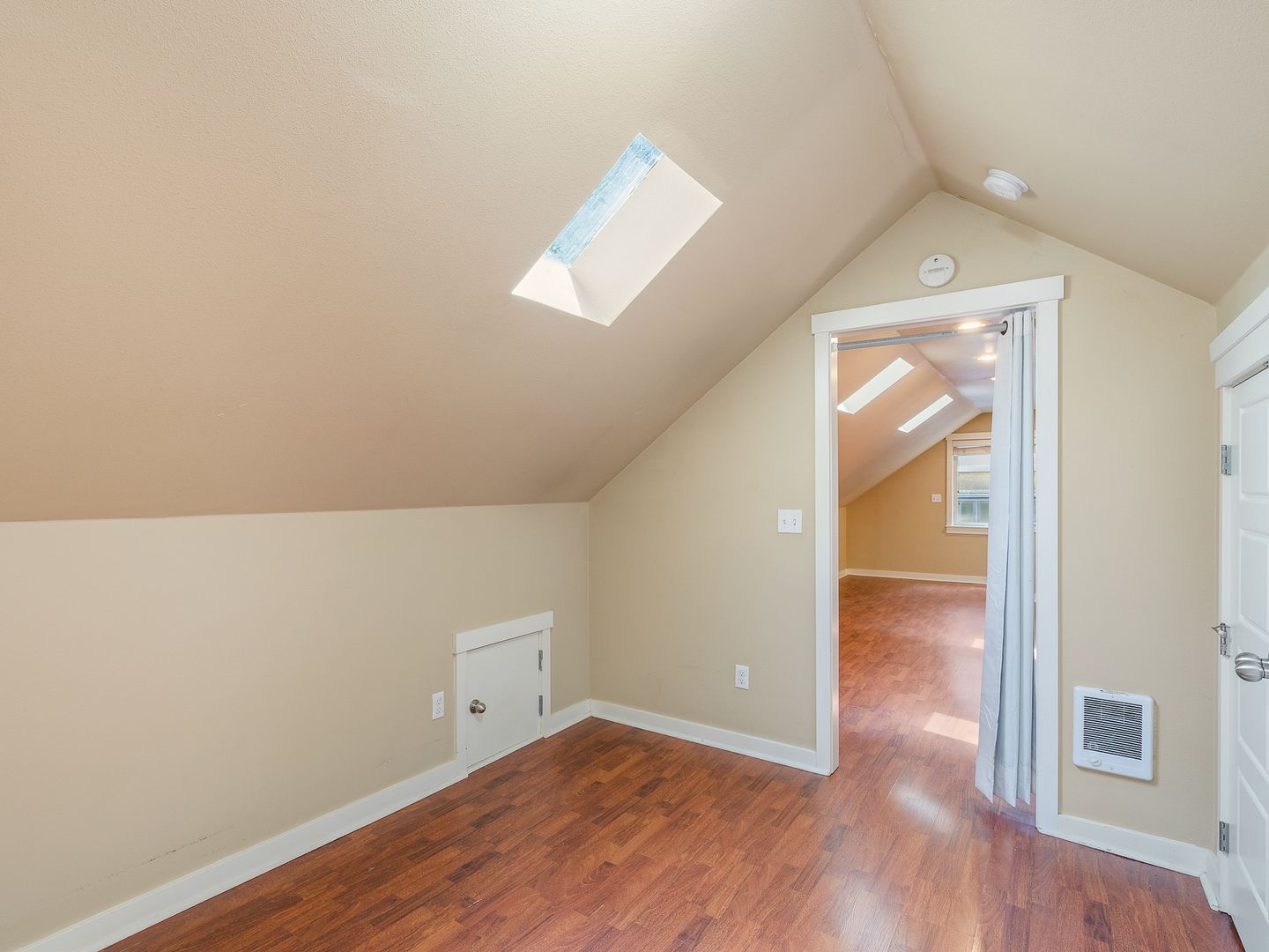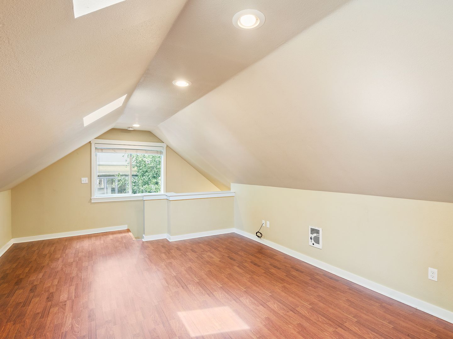 MOVE IN SPECIAL! 1/2 Off First Month's Rent!! Spacious & Updated unit in tri-plex with 1 bedroom and 1 bathroom located in the Alphabet District! Open great-room floorplan with beautiful hardwood flooring. Kitchen includes refrigerator, stove and microwave. Bedroom has large closet and skylight to allow bright natural light in. Bathroom has shower and lots of storage space. Parking spot in driveway. $100 flat fee for utilities. Shared washers and dryers available as well. NO Pets. NO smoking. Drive by and then call 503-526-9311 to schedule a viewing.