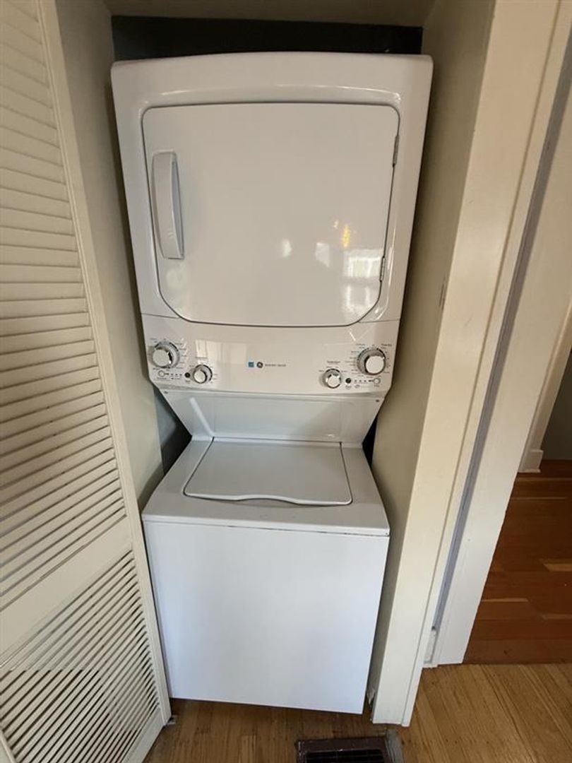 MOVE IN SPECIAL- $500 Off 1st Month's Rent! 1 bedroom, 1 bath 721 SqFt unit in 4-plex! Hardwood floors throughout with Living room and formal dining room. Kitchen includes refrigerator, stove, built-in microwave and dishwasher. Stackable washer & dryer also provided! Extra storage in shared basement. $75 monthly flat fee for water/sewer/trash. Convenient location near both PSU & OHSU and across the street from Duniway Track. NO Pets. NO Smoking. Drive by and then call 503-526-9311 to schedule a viewing.