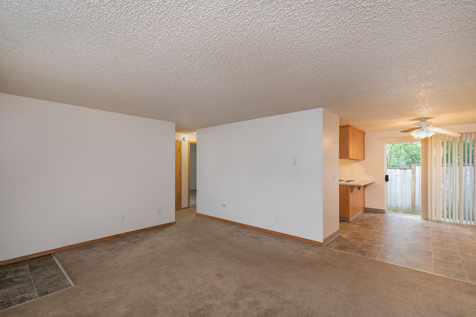 The wood-inspired plank flooring adds a touch of elegance to the living spaces, while the bedrooms are carpeted for added warmth and comfort. The apartment also comes with in-unit washer and dryer hook-ups, making laundry day a breeze.
