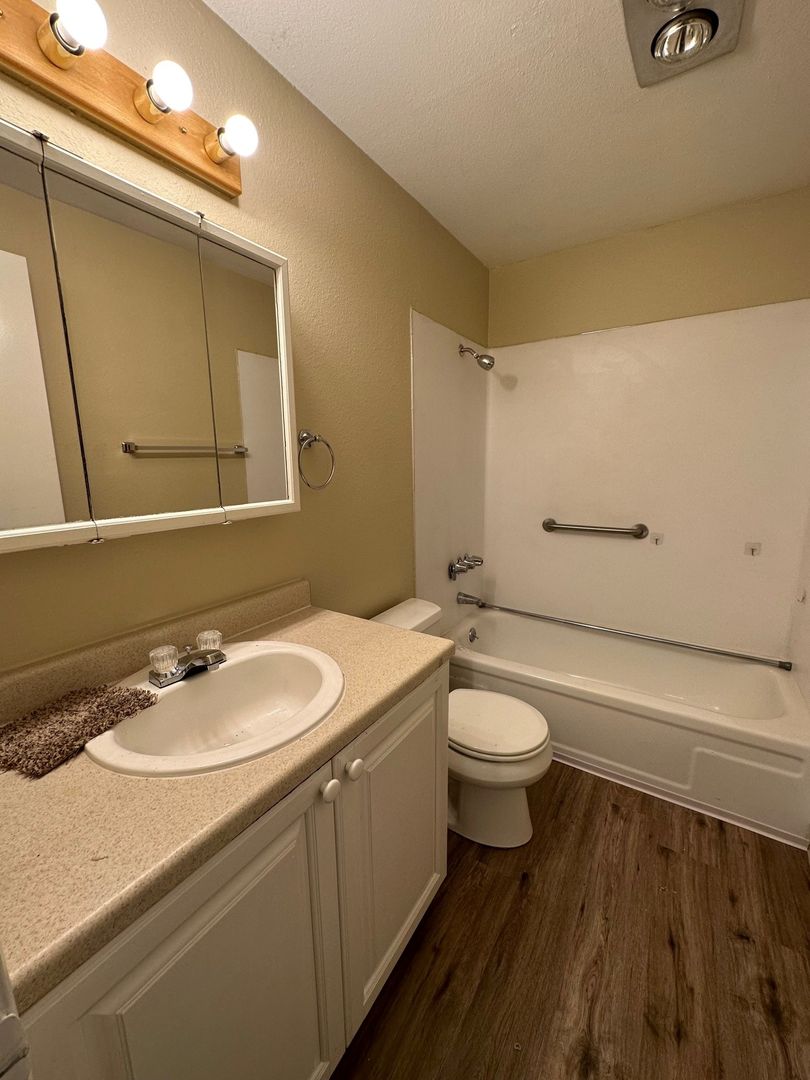 Great 900 SqFt, 2 bedroom 1 bath unit. Spacious living room with high ceiling. Kitchen complete with refrigerator, stove, built-in microwave, dishwasher and disposal. Washer/Dryer hook ups. Fenced back area with covered patio. Water/Sewer/Trash included in rent. Great location in Rock Creek area in quiet cul-de-sac! NO Smoking. NO Pets. Drive by and then call 503-526-9311 to schedule a viewing.