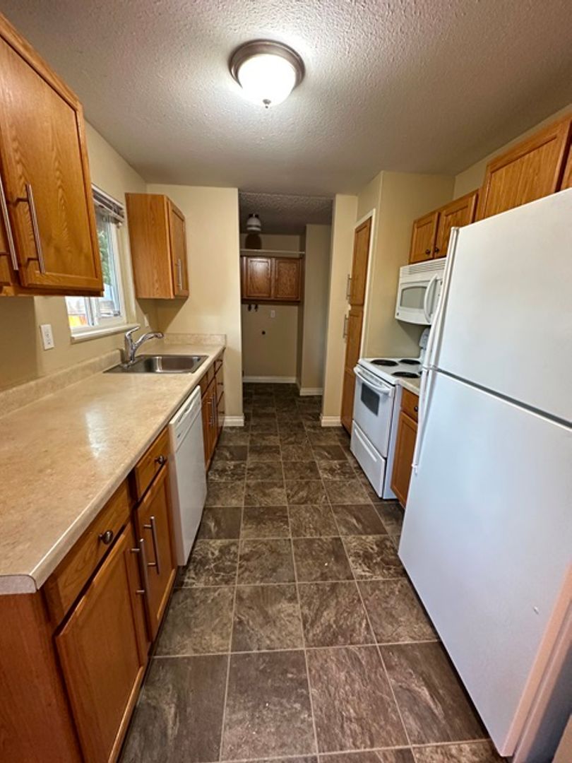 Spacious and inviting 2-bedroom, 1-bath unit featuring a generous 1,011 square feet of living space. The open great room floor plan includes a cozy wood-burning fireplace, perfect for relaxing evenings. The kitchen is fully equipped with a refrigerator, stove, built-in microwave, dishwasher, and garbage disposal. Just off the kitchen, you’ll find convenient washer and dryer hook-ups. Enjoy the private fenced back area accessible via a sliding door. A single-car garage with opener provides secure parking and additional storage. Lease Term: 6 Month lease. No smoking. No Pets. Drive by and then call 503-526-9311 to schedule a viewing.