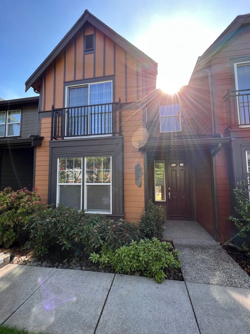 Brilliant 2-bedroom, 2.5-bath townhome offering 1,175 square feet of thoughtfully designed living space in the beautiful Orenco area. This home features brand new central air conditioning for year-round comfort, and a welcoming living room with a cozy gas fireplace that adds warmth and charm. The kitchen comes fully equipped with a refrigerator, stove, built-in microwave, dishwasher, disposal, and a spacious pantry. The adjoining dining area opens to a private deck, making it ideal for both everyday meals and entertaining. Upstairs, both bedrooms offer privacy and comfort, each with its own full bath. A washer and dryer are included for your convenience. The home also features a single-car garage with opener. Located close to parks, shopping, dining, the MAX line, and major employers, this townhome combines comfort, convenience, and a great location. No Pets. No Smoking. Drive by and then call 503-526-9311 to schedule a viewing.